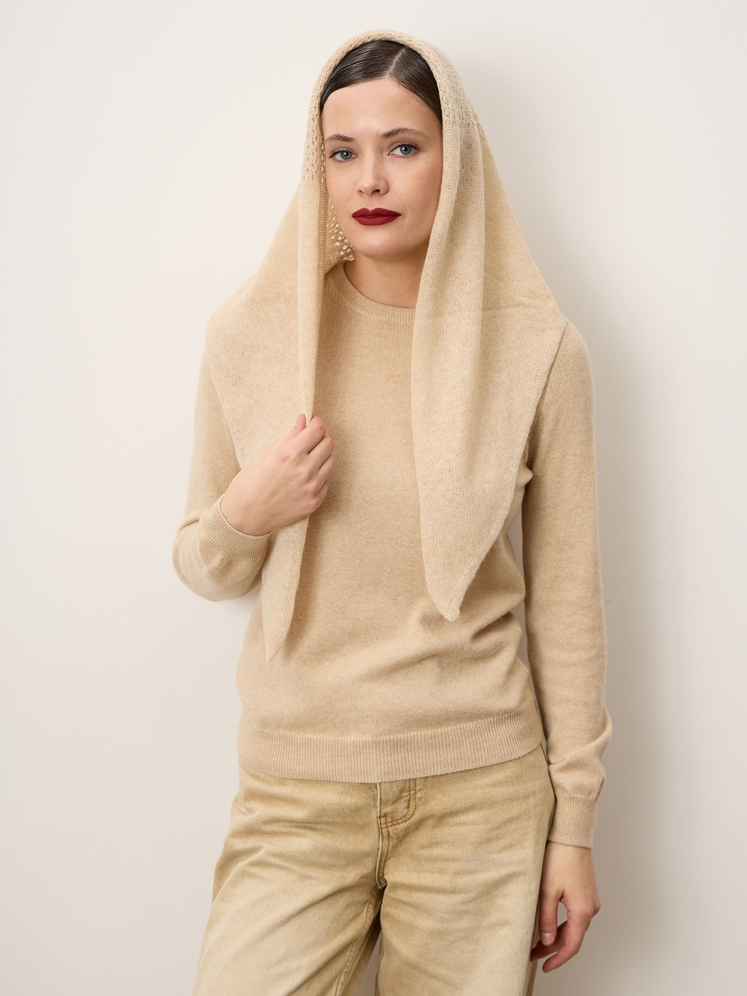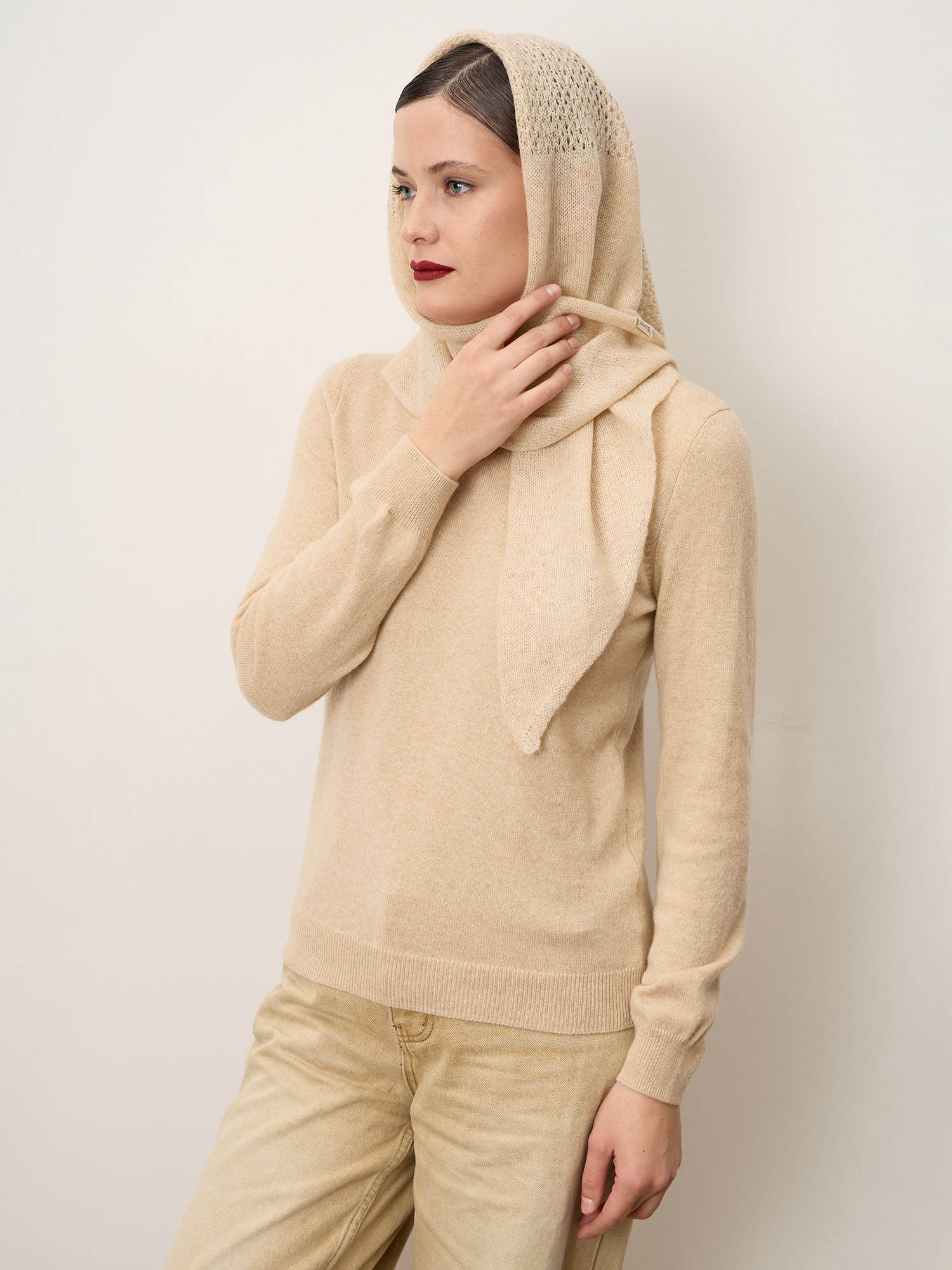 • Пластичность кашемира позволяет косынке легко держать форму и красиво ложиться.