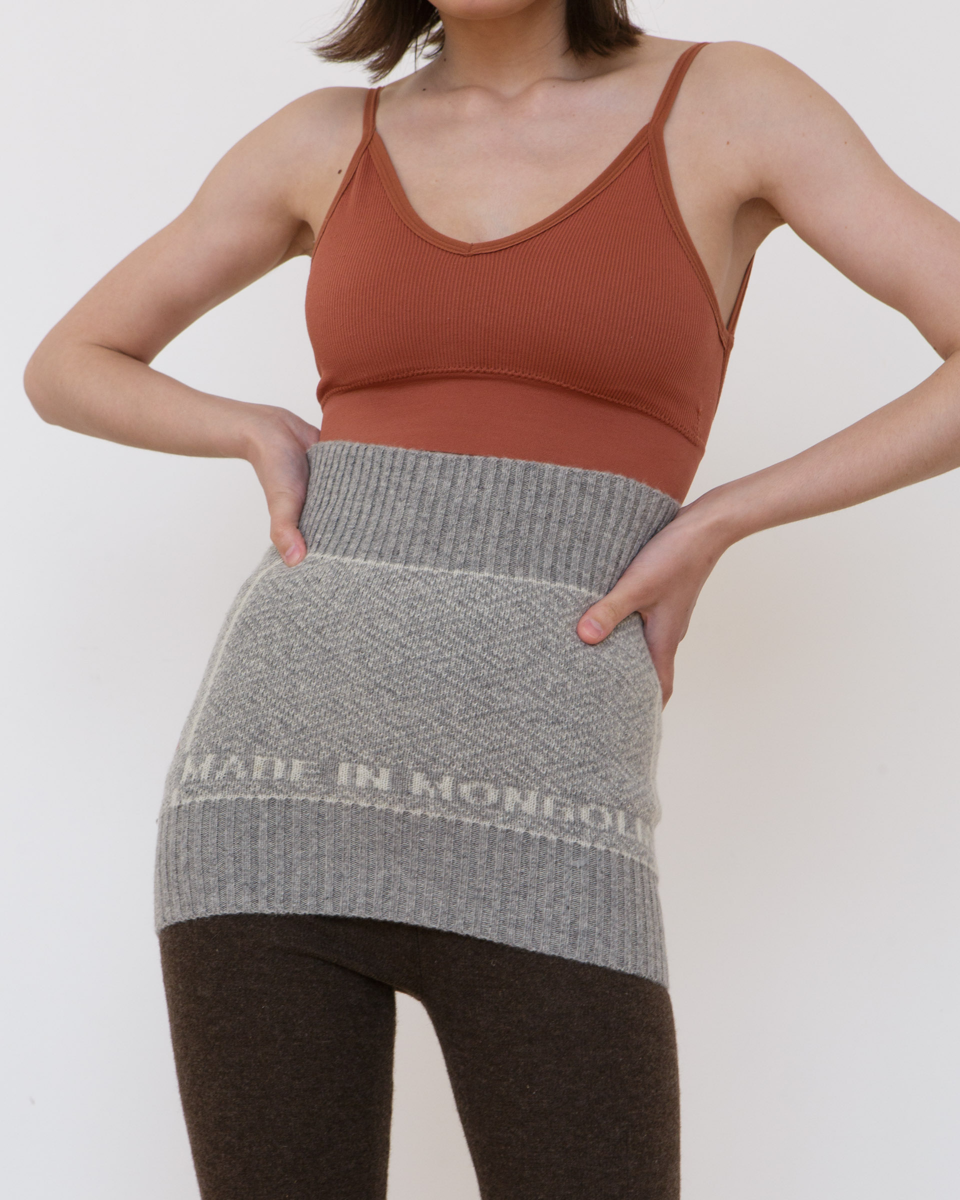 Пояс трикотажный из монгольской шерсти серый