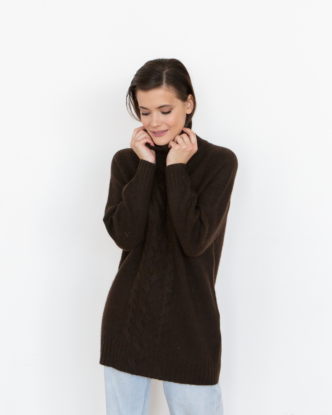 Изящный дизайн с декоративными косами спереди придает изделию уникальность и подчеркивает вашу женственность. Высокий воротник-стойка дополнительно защищает от холода, а универсальный темно-коричневый цвет легко сочетается с различными элементами вашего гардероба.