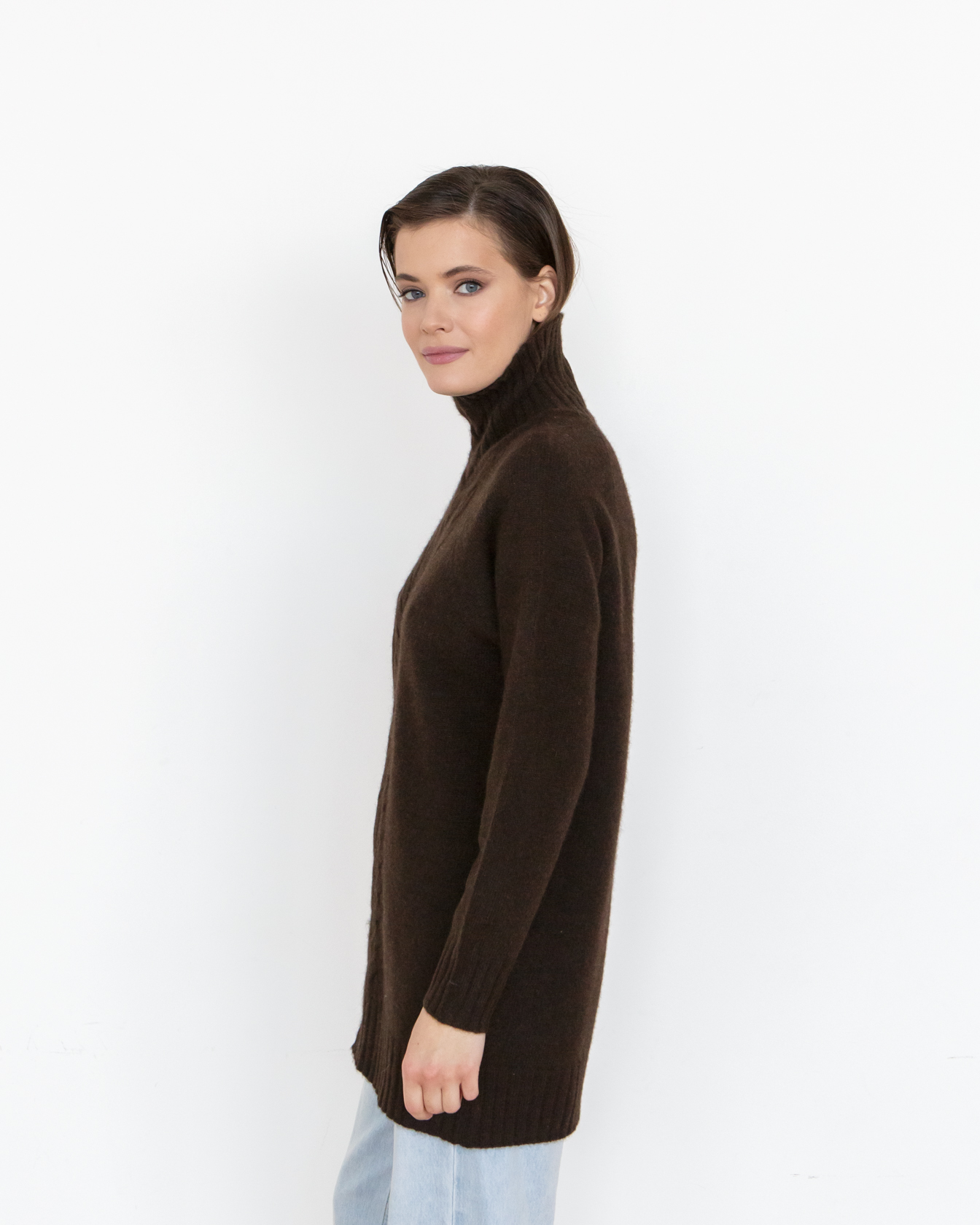 Классная туника, отлично сочетается с рейтузами из пуха яка, длина по спине 73 см, немного колется, но не критично. |